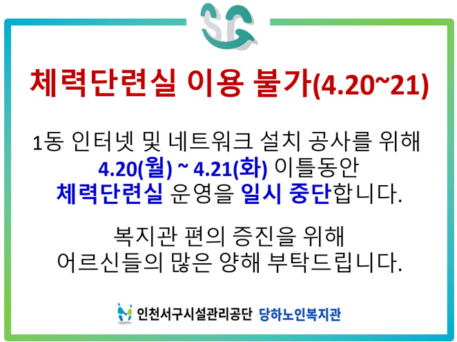 [공지] 체력단련실 운영 일시 중단 안내(4/20월~4/21화)