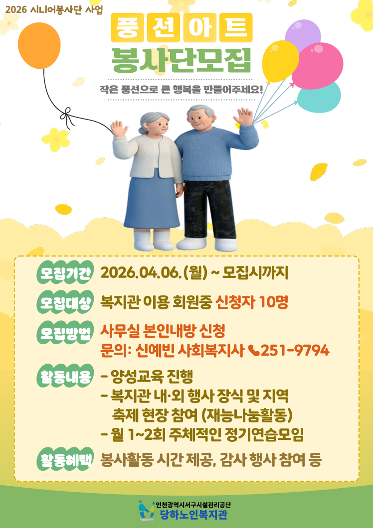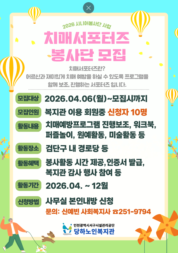 [공고]2026년 당하노인복지관 프로그램 강사 공개모집 최종 합격자 공고