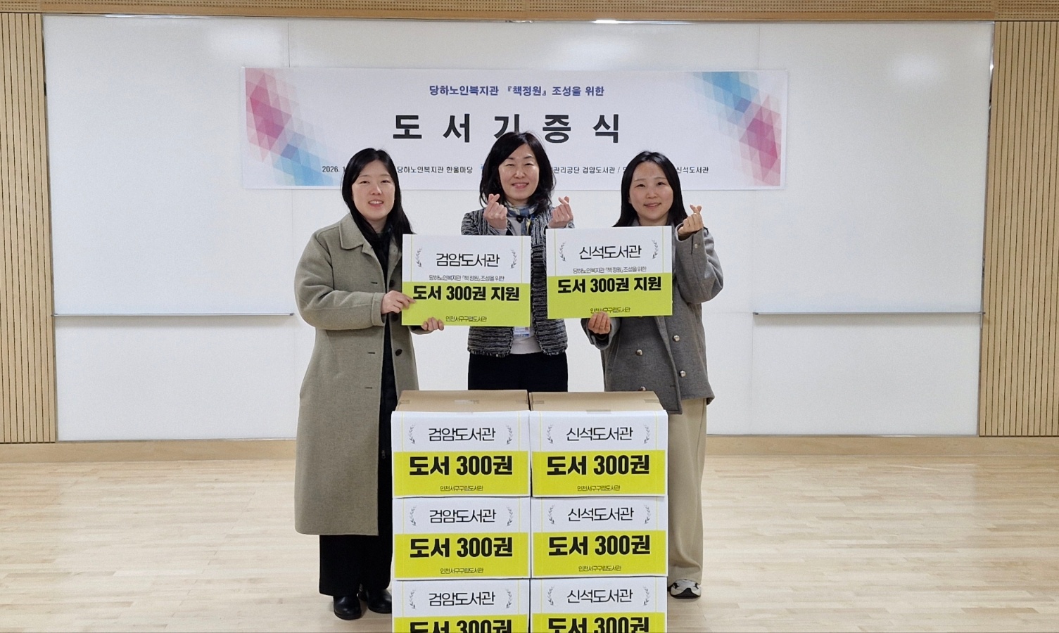 당하노인복지관은 개관 앞두고, 서구 검암도서관, 신석도서관으로부터 각각 도서 300권씩 기증을 받았다.