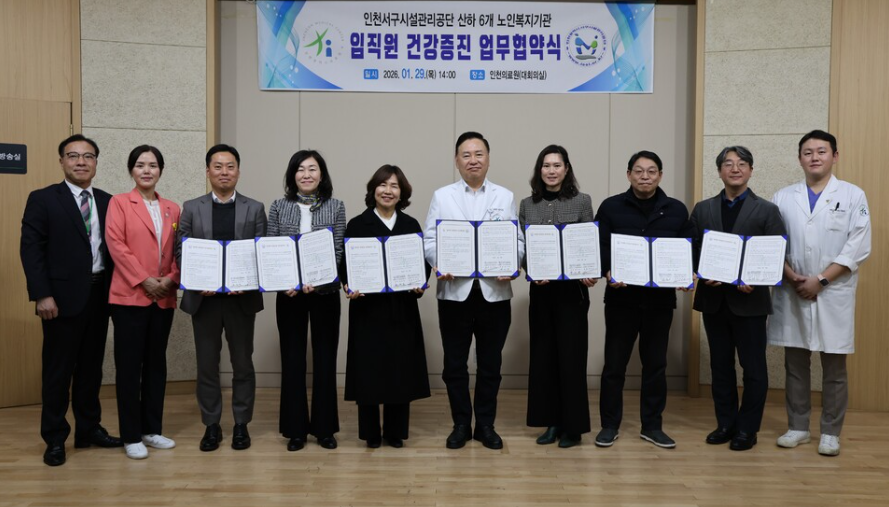 당하노인복지관 및 서구 내 5개 노인복지시설은 29일 인천광역시의료원과 임직원 건강증진 및 지역 어르신 의료지원을 위한 업무협약(MOU)을 체결했다.